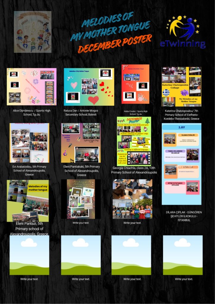 Acest proiect internațional aduce împreună elevi din mai multe țări, oferindu-le oportunitatea de a descoperi frumusețea și diversitatea limbilor materne prin muzică, ritm și expresie artistică. Activitățile propuse îmbină elemente de limbă, cultură și creativitate, încurajând elevii să își valorifice identitatea culturală și să o împărtășească partenerilor europeni.